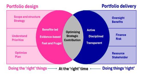 - Doing things ‘right’: So that portfolio performance matches the promise. This doesn’t mean that portfolio management takes responsibility for initiative delivery or micro-manages individual initiatives. Indeed accountability for benefits realisation remains with the sponsor and responsibility for project delivery continues to reside with the project manager. Rather, portfolio management is concerned with ensuring the constraints, risks and dependencies that too often de-rail delivery, are identified and effectively managed at a collective level, and that benefits realisation and strategic contribution are optimised in practice. Portfolio management is thus an enabler for both strategy execution (by ensuring we do the ‘right’ initiatives) and initiative delivery (by ensuring we address the barriers to delivery).