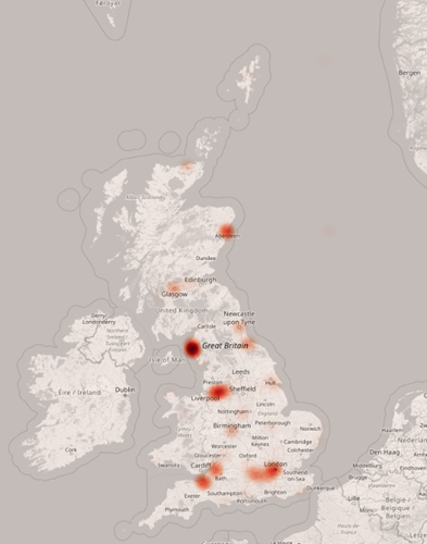 Heatmap showing location of project professionals: