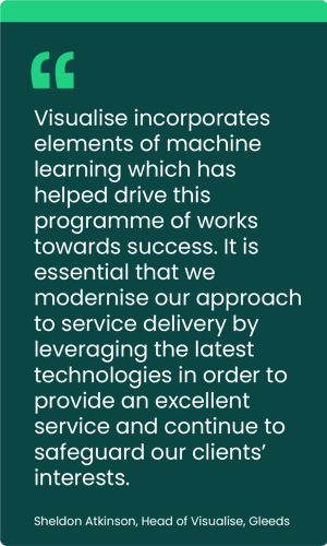 As well as the many client benefits, James pointed to numerous case studies showcasing increased productivity throughout Gleeds’ business. “Thanks to this kind of automation, we have case studies and RoI calculations that demonstrate significant efficiencies,” he added.