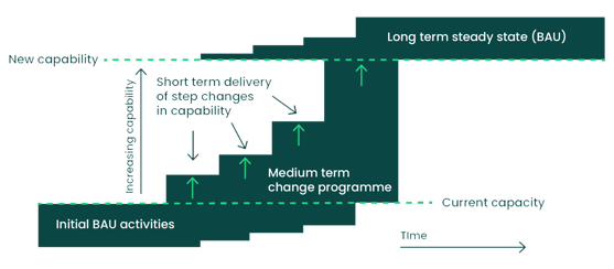 Programme management is focused on the delivery of change within an organisation or environment. The transition from projects delivering outputs to embedding new working practices as business as usual, requires a planned and systematic approach necessitating leadership, drive and commitment.